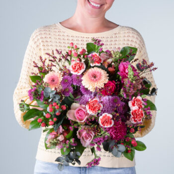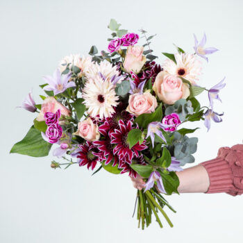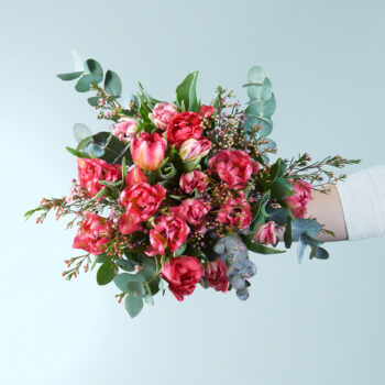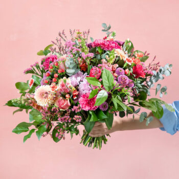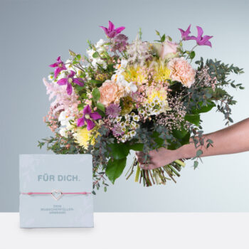 Wenn Du ein etwas größeres Budget hast, kannst Du deiner Mama etwas ganz Besonderes schenken! Unsere Sträuße zwischen 30€ und 50€ sind bereits sehr großund üpprig, wie zum Beispiel der explosive Strauß “Helena”, der vor allem durch die wunderschönen Dekorationen mit Eukalyptus auffällt. Für ein kleines Extra empfehlen wir einen Blumenstrauß mit Geschenk – zum “Frühlingserwachen” bekommt deine Mutter ein wunderschönes Armband mit einem dezenten Herzanhänger!