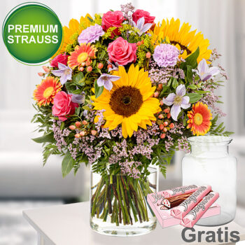 Alle, für die der Preis der Blumen keine Rolle spielt, fühlen sich bei unseren hochwertigen Premiumsträußen wahrscheinlich am besten aufgehoben! Hier ist deiner Fantasie kein Ende gesetzt. Die extragroßen Stäuße enthalten oft einen besonders bunten Mix aus unterschiedlichen Blüten – im Blumenstrauß “Meine Heldin” sind zwischen Rosen und Gerbera ganze Sonnenblumen untergebracht! Die Sträuße sind überdurchschnittlich groß und eignen sich für eine besondere Überraschung am Muttertag!