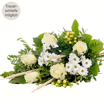 Ein stiller Gruß zur Beerdigung kann Wunder bewirken. Ein mit Liebe ausgewählter Kranz zeigt, dass Sie Anteil nehmen und helfen Trauergemeinde durch eine schwierige Zeit. Mit schönen Lilien, Rosen, Callas und Nelken symbolisieren Sie in Weiß einen hoffnungsvollen Übergang eines lieben Menschen vom Leben in den Tod. Schenken Sie mit unseren schönen Trauerblumen einen stillen Gruss zur Beerdigung.